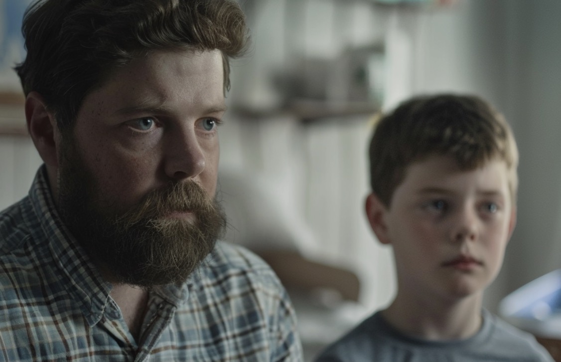 В останній день це сталося, коли його сина мала забрати колишня дружина. Чоловіка немає, хлопчик сидить на сумці перед дверима з нещасним виглядом. Ситуація напружена.